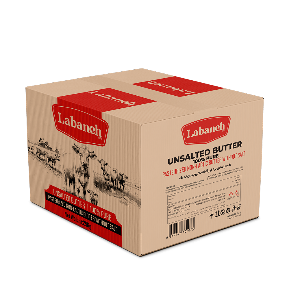 بسته بندی کره حیوانی پاستوریزه 20 کیلوگرمی به گونه ای طراحی شده است که در محیطهای صنعتی و تجاری قابل استفاده باشد. این نوع بسته بندی معمولا شامل کارتنهای محکم برای جلوگیری از آسیب و آلودگی در حین حمل و نقل است. کرههای پاستوریزه معمولاً به دلیل فرآیند پاستوریزاسیون، ماندگاری بیشتری دارند و قابلیت نگهداری در شرایط مناسب را برای مدت زمان طولانیتری دارا هستند